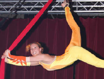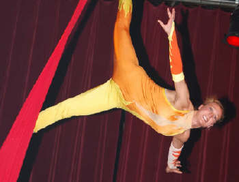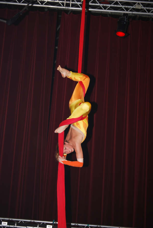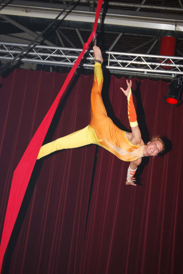 Djura presenteert een charmant luchtnummer aan het vertikale koord of de tissue. Dit is een uitermate geschikte luchtact voor openingen, bedrijfsfeesten, discotheken en circus. Tevens heeft Djura de beschikking over een buiteninstallatie zodat deze acrobatische luchtact ook in de buitenlucht uitgevoerd kan worden. De afgelopen jaren was zij in verschillende circussen te zien met haar act. Speelvlak: minimale koord hoogte 5 m